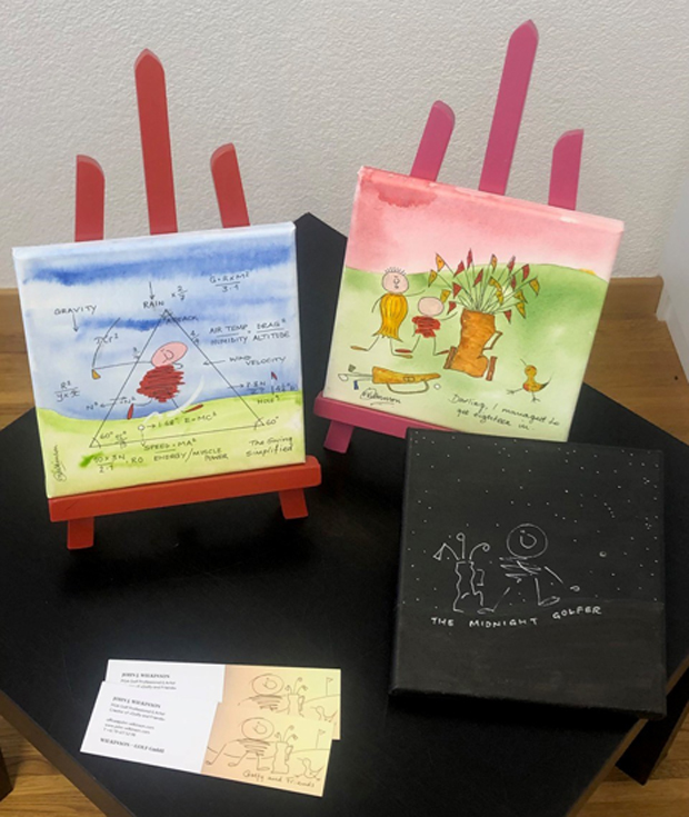Als Turniersponsor offeriere ich Ihnen einzigartige, signierte und gerahmte Drucke aus meiner «Golfy» Gallerie.